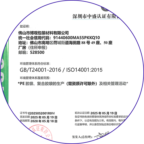 博觀通過環境管理14001認證